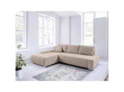 Canapé D’angle Convertible Gauche 4 Places Coffre Jonas Velours Côtelé Taupe