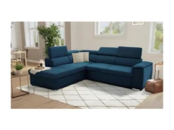 Canapé D’angle Convertible Panoramique 5 Places – Tissu Malmo Bleu Marine – DAYTONA