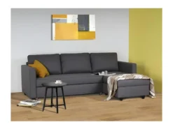 Canapé D’angle Convertible Panoramique 5 Places – Tissu Malmo Anthracite/gris – DAYTONA