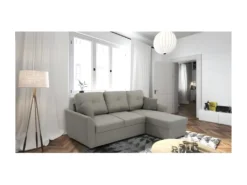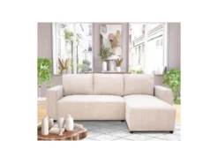 Canapé D’angle Convertible Réversible 4 Places – Tissu Beige – Contemporain – HAMILTON