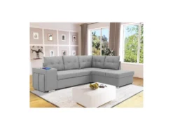 Canapé D’angle Convertible Réversible 5 Places – Tissu Gris – FOLK