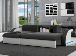 Canapé D’angle Convertible Et Réversible En Simili à Leds CORNEILLE – Bicolore Noir/blanc
