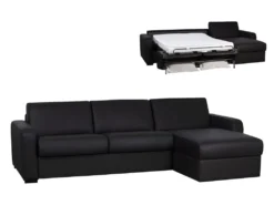 Canapé D’angle Convertible Express En Cuir BEVIS – Noir – Angle Gauche