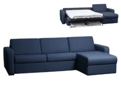 Canapé D’angle Convertible Express Et Réversible FLAVIEN En Tissu – Bleu
