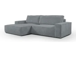 Canapé D’angle Convertible En Velours Côtelé Gris AMELIA De Pascal Morabito – Angle Gauche