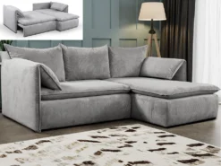 Canapé D’angle Convertible Et Réversible En Tissu Gris Clair LADAZIA