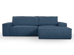 Canapé D’angle Convertible En Velours Côtelé Bleu Marine AMELIA De Pascal Morabito – Angle Droit
