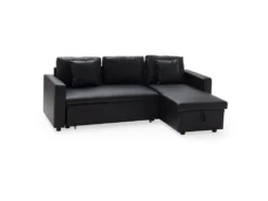 Canapé D’angle Convertible Simili CLARK 3 Places Noir – HAPPY GARDEN