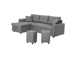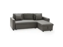 Canapé D’angle Convertible TONY 3 Places Gris – HAPPY GARDEN