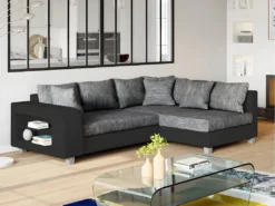 Canapé D’angle Convertible LOGAN 3 Places Gris Chiné – HAPPY GARDEN
