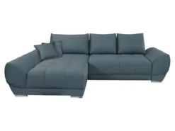 Canapé D’angle Gauche Convertible En Velours Bleu Canard PADRU