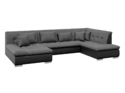Canapé D’angle Droit Panoramique Convertible En Tissu Texturé Et Simili Gris Et Noir SONDRIO