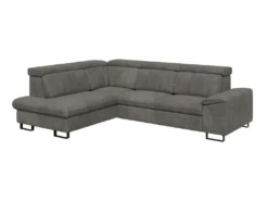 Canapé D’angle Gauche Convertible En Velours Gris Anthracite PADRU