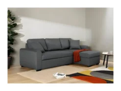 Canapé D’angle Panoramique Convertible En Tissu SUNTER – Anthracite – Angle Droit