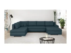 Canapé D’angle Panoramique Convertible -7 Places – 100% Polyester – Bleu Canard – INDIAN
