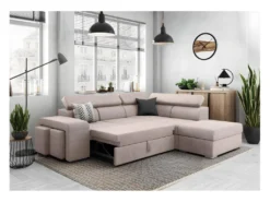 Canapé D’angle SOAN Convertible En Tissu – Beige – Angle Droit