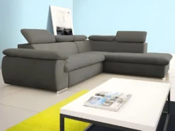 Canapé D’angle Convertible En Tissu Gris Bleuté LAZARE De PASCAL MORABITO – Angle Droit