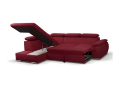 Canapé D’angle Convertible En Tissu Avec Coffre De Rangement FABIEN – Rouge – Angle Gauche