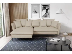 Canapé D’angle Convertible En Tissu Beige LAZARE De PASCAL MORABITO – Angle Gauche