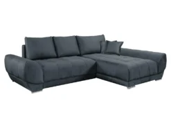 Canapé D’angle Droit Convertible En Velours Gris Anthracite PADRU