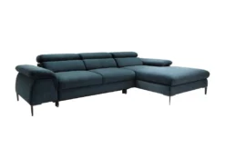 Canapé D’angle Droit Convertible En Velours Côtelé Bleu Foncé ALEXANDRA