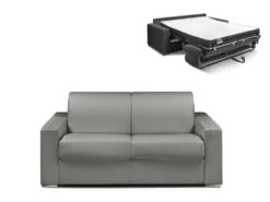 Canapé 2 Places Convertible Express En Simili CALIFE – Taupe – Couchage 120 Cm – Matelas 14 Cm