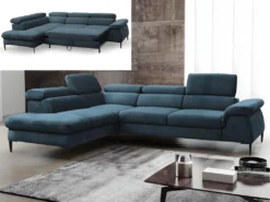 Canapé Grand Angle Convertible En Velours Bleu Nuit SEPINA De PASCAL MORABITO – Angle Droit