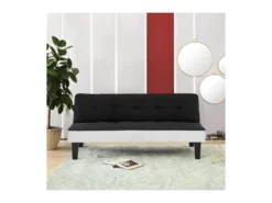 CELIA Banquette Clic-Clac 3 Places Contemporain Capitonné – Tissu Noir – L 168 X P 73 X H 71 Cm