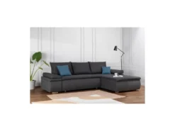 CLARISSE – Canapé D’angle Convertible Réversible Avec Coffre En Velours Côtelé – Gris Anthracite