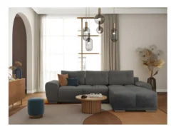 CASSANDRA – Canapé D’angle Convertible Avec Coffre En Tissu – Gris – Angle Gauche