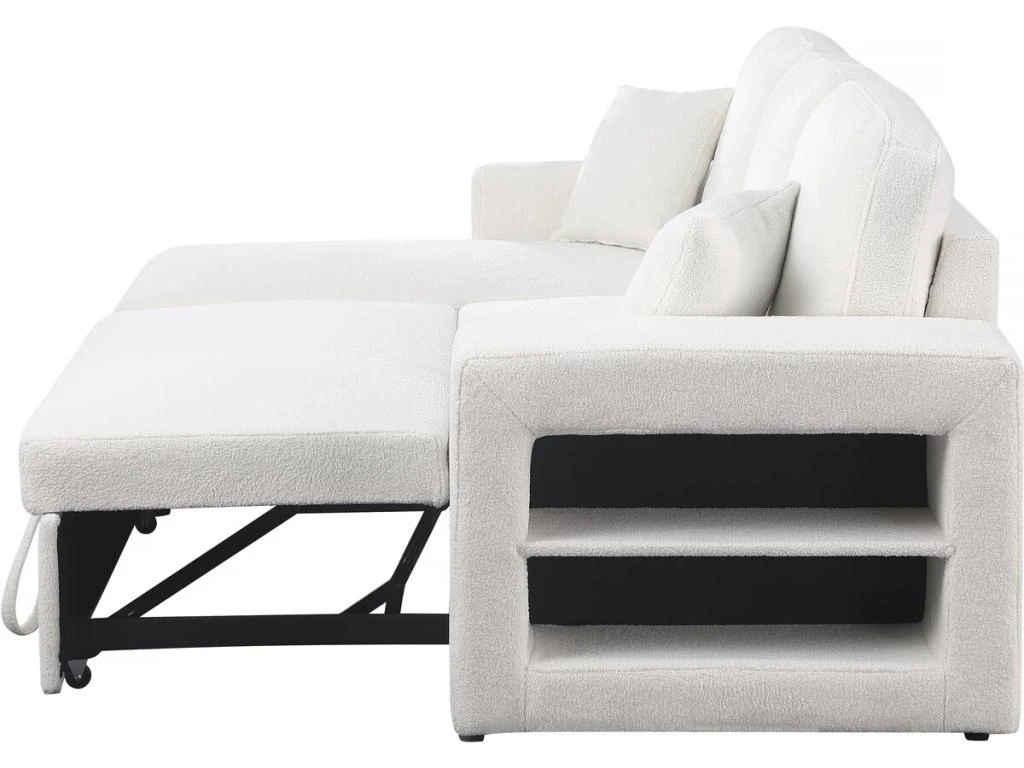 Ce canapé moderne en lin est doté d’étagères intégrées sur le côté.Qui sont conçu pour offrir un gain de place précieux et pourront accueillir des livres des magazines ou encore la télécommande de votre téléviseur.