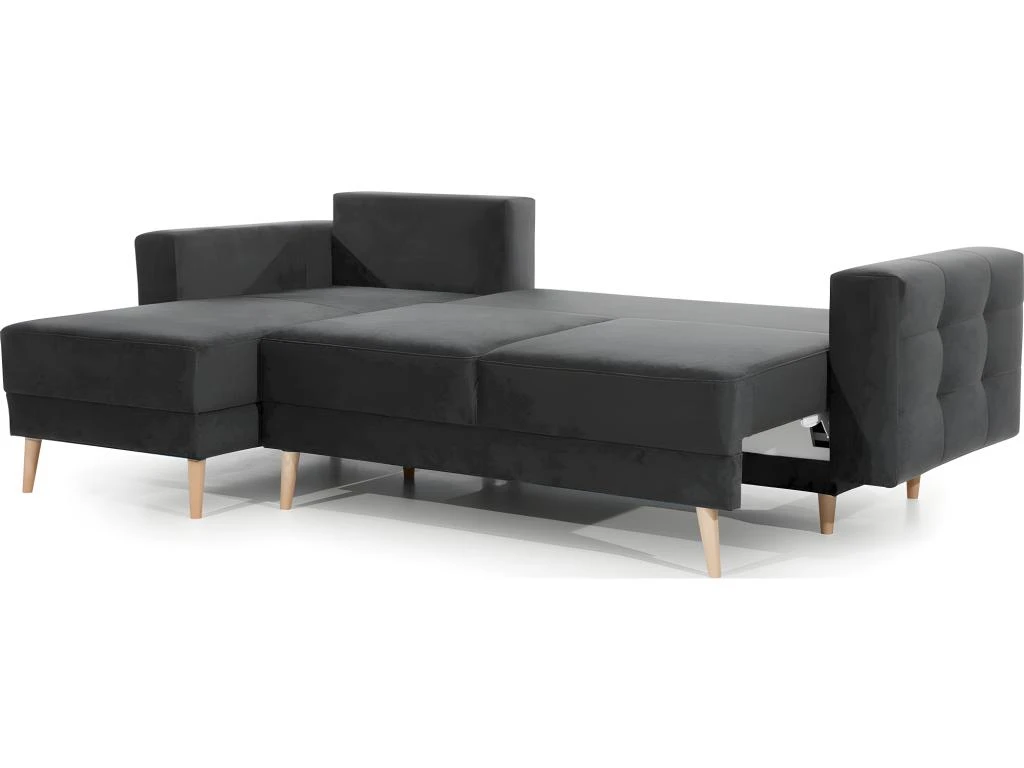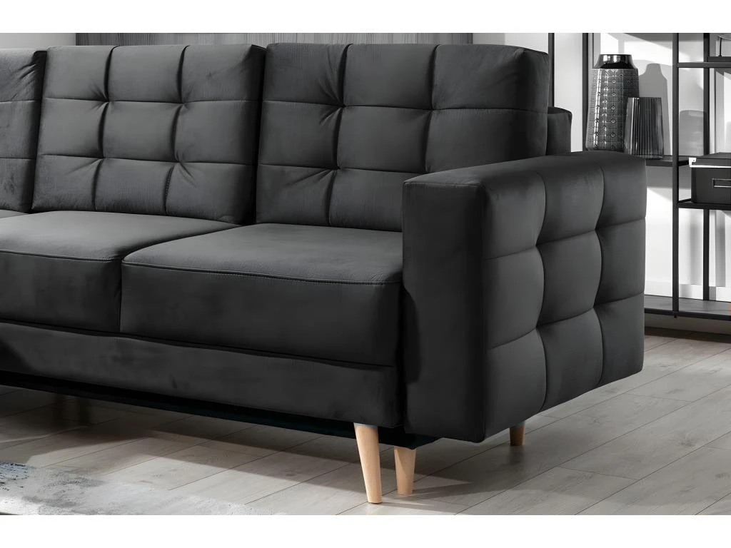 Canapé D’angle Convertible ASSIA VELOURS – En Tissu De Qualité 5 Places, Gris Anthracite, Angle Gauche (vu De Face)