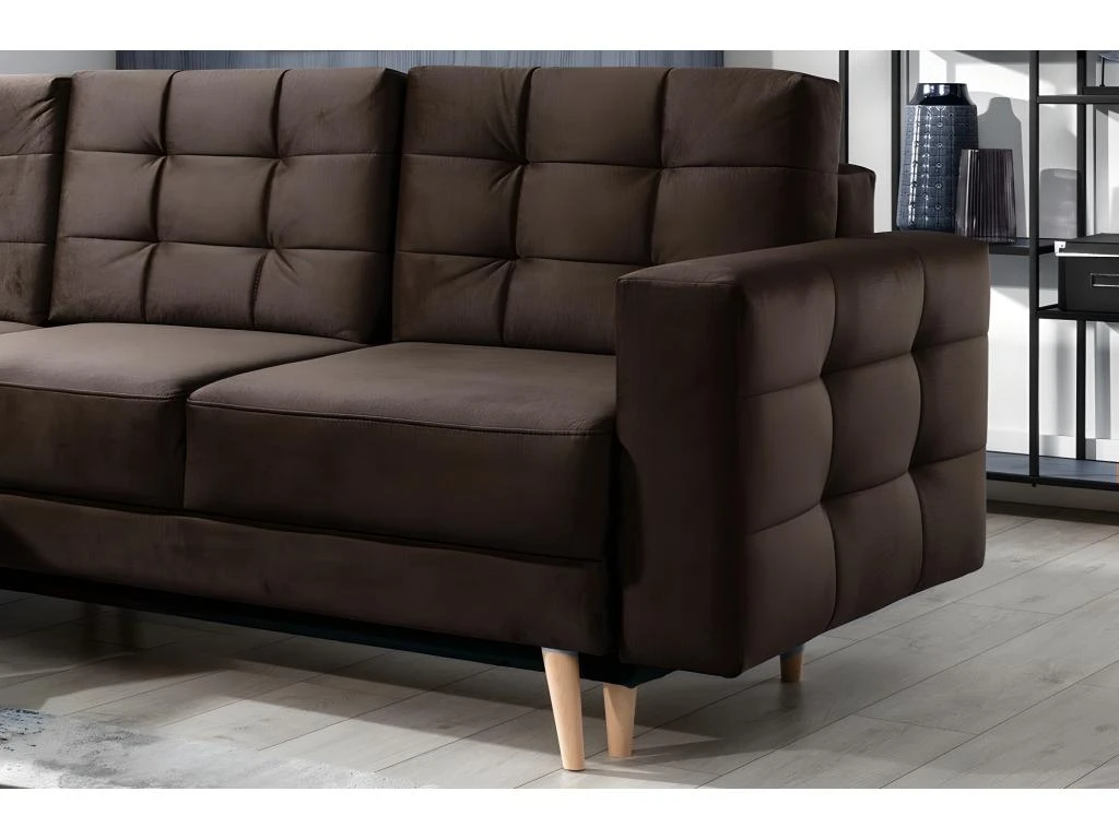 Assises profondes, dossiers ergonomiques et accoudoirs hauts : telles sont les caractéristiques du canapé d’angle ASSIA, qui mise sur le style et le confort. Et ce n’est pas étonnant, car il est destiné à être raffiné par sa conception tout en assurant le plus haut niveau de confort possible. Le style s’inspire de thèmes rétro. Même si le canapé ASSIA conviendra parfaitement dans un intérieur contemporain. Il vous surprendra par le soin apporté au niveau des belles finition et du détail, telles que les coutures élégantes et le capitonnage subtil sur les côtés et les dossiers, ainsi que par ses jolis hauts pieds en bois. Il est proposé en plusieurs couleurs. (Et d’autres tissus).