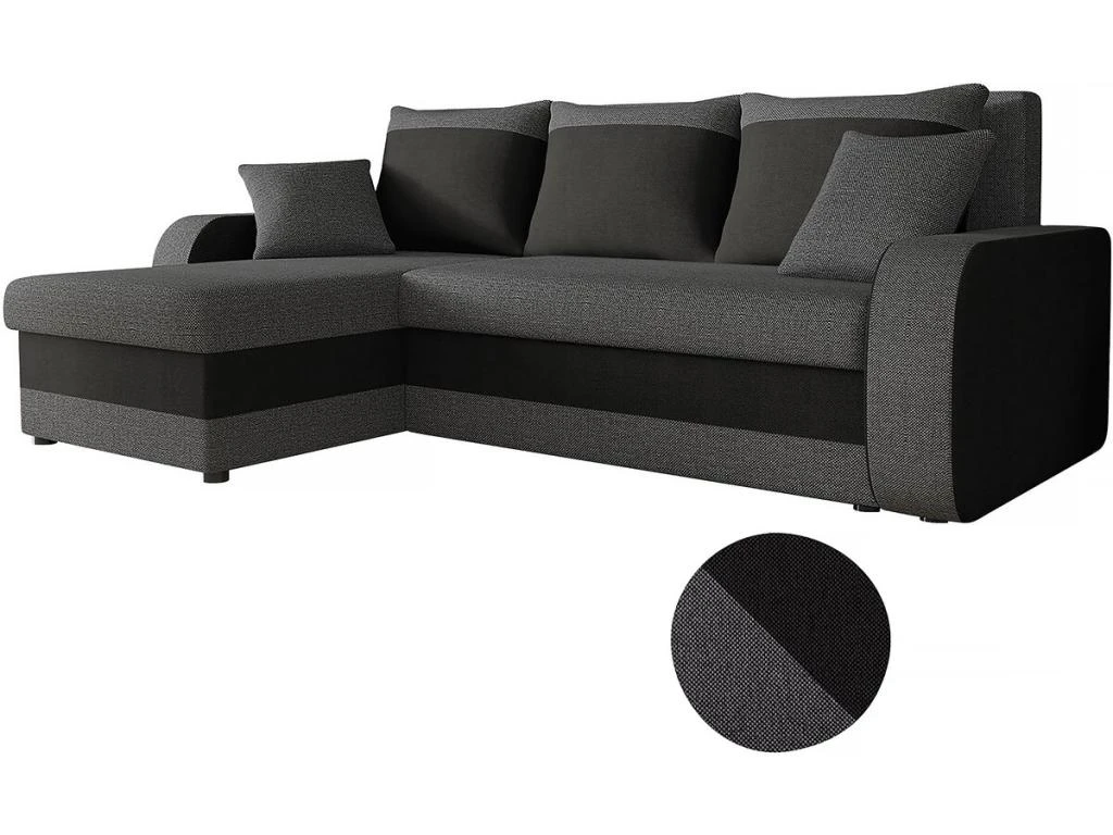 Descriptif : Canapé d’angle Kris tissu – 5 places – 238 x 147 x 80 cm – Gris/Noir .