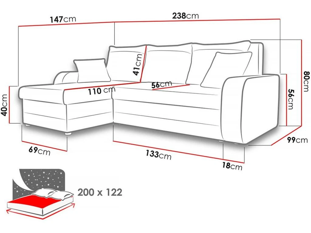 Dimensions du canapé : 238 x 147 x 80 cm.