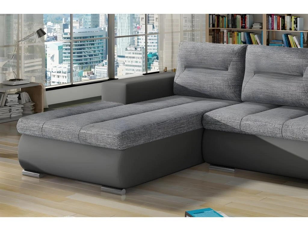 Design pur, forme épurée et élégante. Ce canapé d’angle allie simplicité et élégance, et il s’intègre parfaitement dans les aménagements industriels. La structure solide est une garantie pour un usage à long terme tout en bénéficiant d’un canapé élégant. Tout cela grâce à l’utilisation de matériaux de rembourrage de la meilleure qualité. Le canapé peut être choisi dans différentes combinaisons de couleurs et de matières, il peut être commandé en bicolore ou en uni. Il dispose d’un espace de rangement. Dispose d’un élément décoratif sur le côté. Ce très joli canapé dispose de coutures élégantes sur les assises et les dossiers.