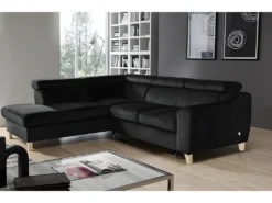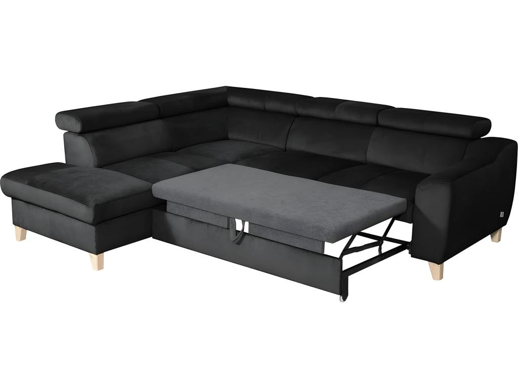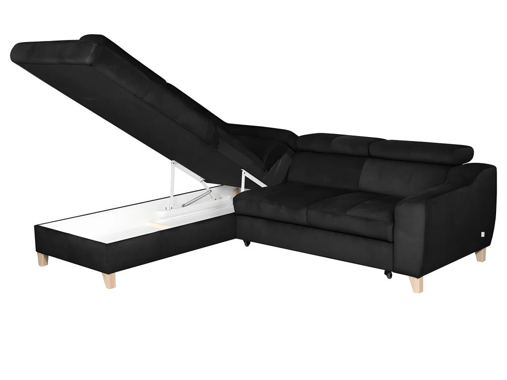 Voici un beau canapé convertible en tissu velours luxe. Un style contemporain, design et très épuré. Il offre un excellent confort. Avec sa belle méridienne confortable. Coffre de rangement. Tétières réglables multiposition. Très belle qualité de fabrication. Fabrication européenne.