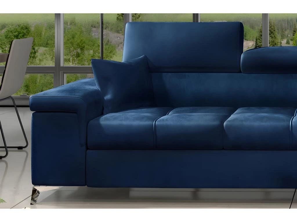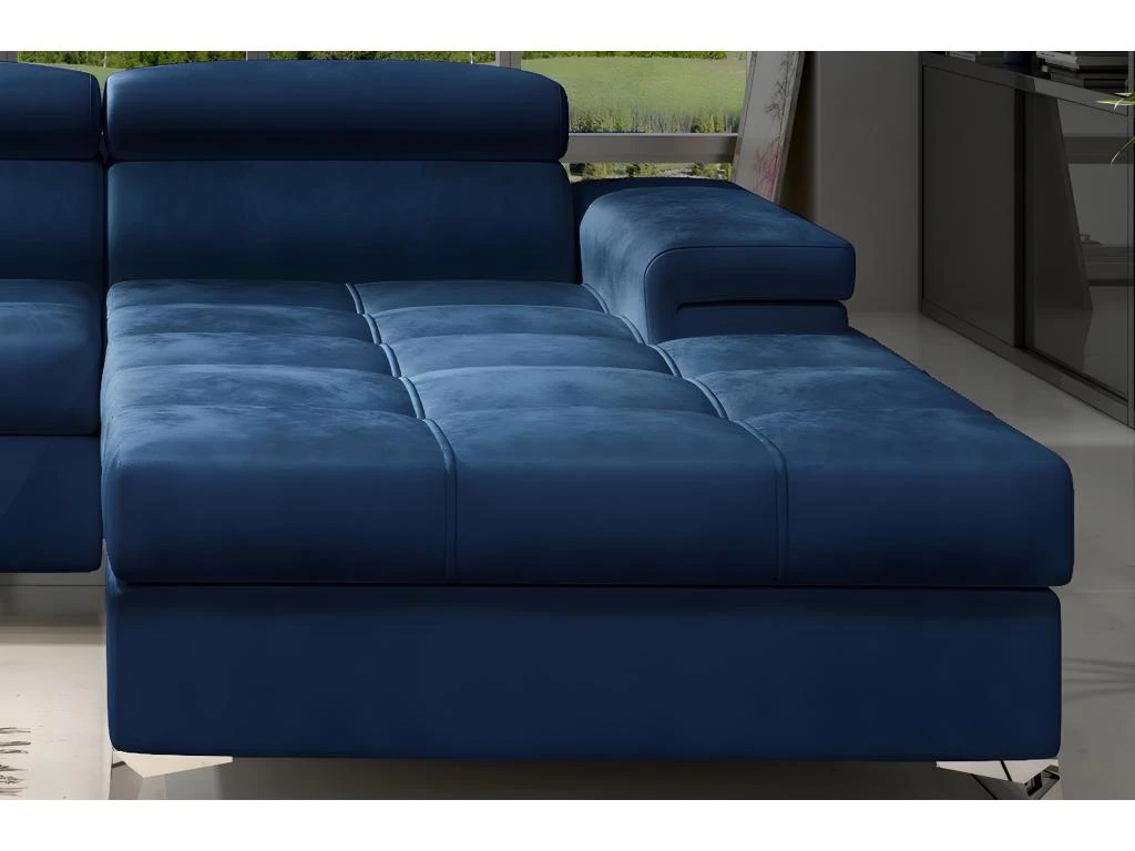 Très joli canapé d’angle en tissu RICHARD. Avec son style élégant et contemporain. Il dispose de la fonction couchage à ouverture facile. Coffre de rangement pratique. Vous apprécierez le très bon confort de son assise au tissu très doux grâce à la qualité de sa mousse haute qualité et au fait que son assise dispose également de ressorts entrecroisés. Sa fonction couchage vous permettra de profiter de belles nuits de sommeil agréables et à son confort au quotidien. Dispose d’appuie-tête réglables multipostions et de larges accoudoirs pratiques pour profiter de votre canapé de manière optimale. Avec surpiqures sur l’assise pour votre plus grand confort. Disponible en plusieurs couleurs pour réussir votre décoration intérieure. Le dos du canapé est rembourré et de belle finition, vous permettant de mettre le canapé au milieu de la pièce si vous le souhaitez. Fabrication de qualité. Fabrication européenne.