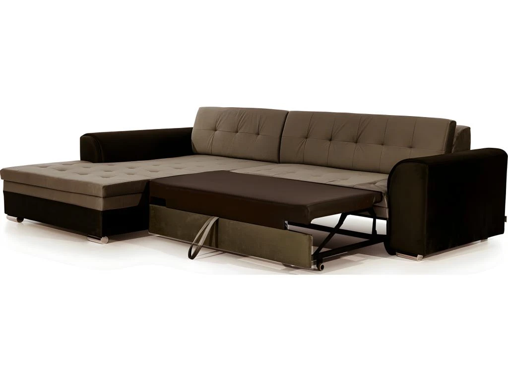 Ce canapé impressionne par son très joli look ainsi que par ses fonctionnalités. La forme optimale du dossier permet de profiter pleinement de moments de détente. Une assise très confortable grâce à la qualité de son assise et de son rembourrage composé de ressort continus et de mousse haute qualité T30. Cette combinaison maximise le confort, soutient correctement le corps et résiste à la déformation. Ce canapé d’angle est idéal pour se détendre de jour comme de nuit, puisqu’il est facile et rapide de transformer le canapé en un lit confortable, avec une large surface de couchage de 210×126 cm.