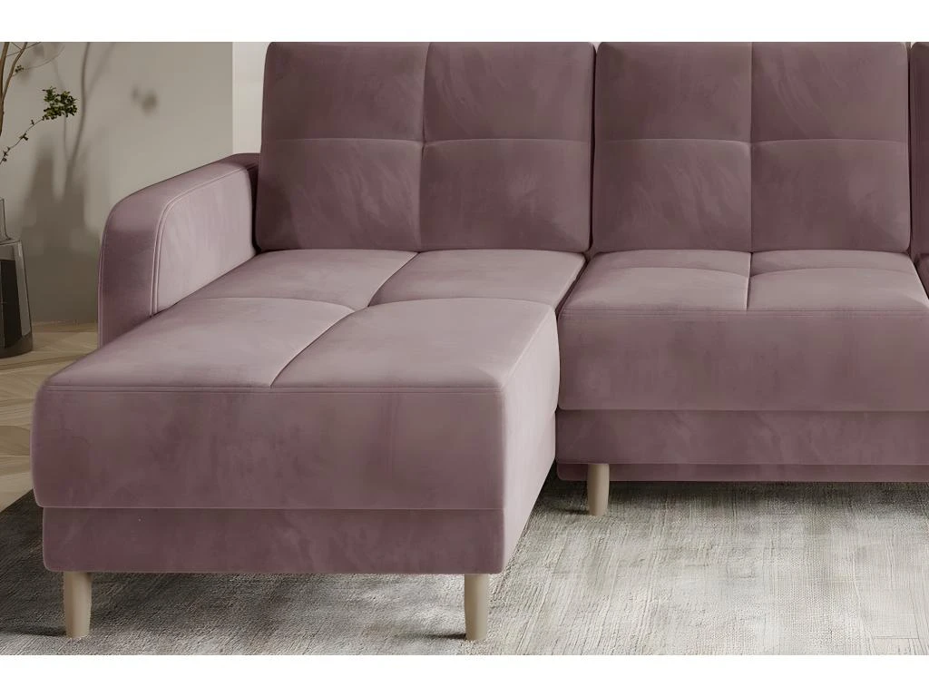 Canapé D’angle Convertible En Tissu Velours Luxe, Rangement – Rose Pale, Angle Gauche (vu De Face), ROXANE VELOURS