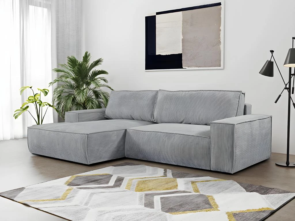 Le canapé d’angle convertible AMELIA en velours côtelé est la pièce qui viendra sublimer votre salon grâce à son élégance et à l’accueil doux et confortable qu’il vous offrira. Ce modèle est aussi très fonctionnel. Convertible et pratique, vous pourrez le transformer en un couchage supplémentaire très rapidement et aussi ranger vos affaires dans le coffre sous l’assise.