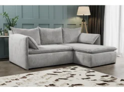 Idéal pour les petits espaces, le canapé d’angle convertible TEODORA deviendra rapidement une pièce maîtresse de votre salon grâce à la douceur de son velours côtelé, son look tendance souligné par ses accoudoirs fins relevables et à son aspect pratique. Vous allez adorer vous y prélasser ! Convertible et doté d’un coffre de rangement sous l’assise, ce modèle sera très utile au quotidien pour ranger draps, oreillers ou couettes.