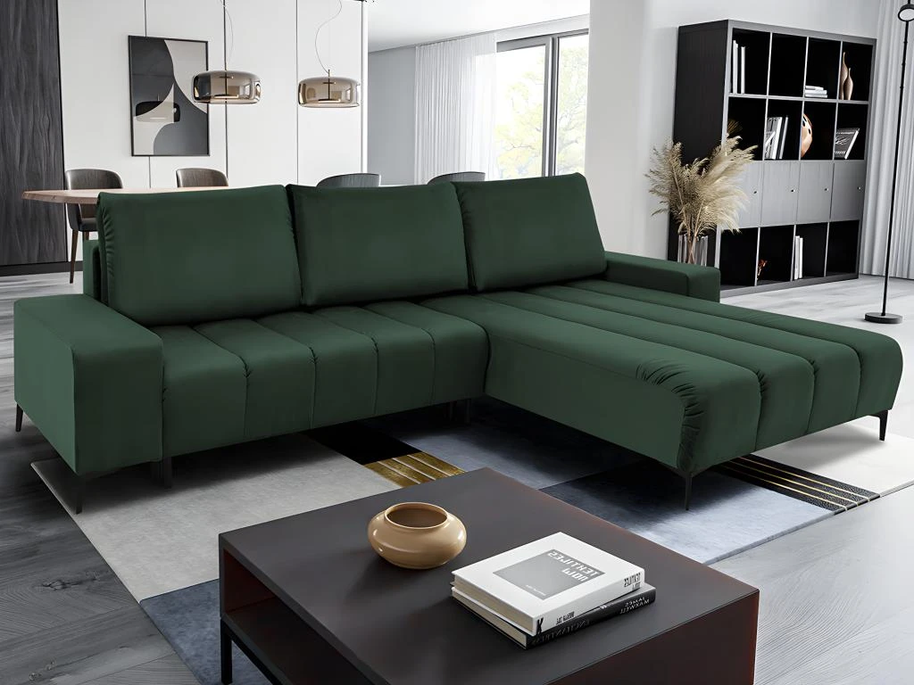 Vous avez envie d’un canapé convertible à la fois moderne et pratique ? Choisissez le canapé en velours DIALLA ! Son revêtement en velours et son assise matelassée font du canapé DIALLA un modèle moderne qui s’intégrera parfaitement dans tous types d’intérieurs. Grâce à son angle réversible, vous pouvez choisir facilement l’angle qui conviendra le mieux à votre salon. Avec son mécanisme convertible, transformez ce canapé en un couchage de manière simple et rapide. Profitez également de son coffre de rangement discret sous l’assise.