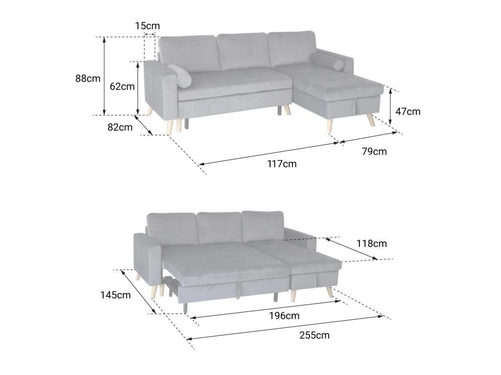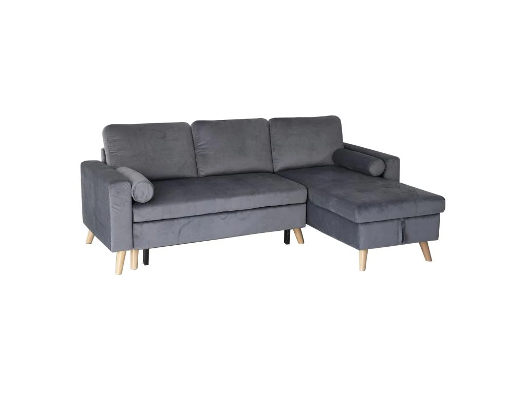 Le canapé d’angle convertible de la gamme JAMES a été conçu en velours gris pour donner une touche de douceur fort agréable. Rien de mieux que de se prélasser assis dans le canapé ou semi-allongé sur la méridienne qui crée l’angle, que vous pouvez disposer soit à gauche, soit à droite. Pratique pour maîtriser l’agencement de la pièce et gagner de la place. Il est un complément indispensable à votre mobilier intérieur tant il offre une atmosphère apaisante avec sa couleur sobre et son aspect scandinave. Ce canapé convertible, comme son nom l’indique, se change en canapé-lit 2 places dès que vous en avez besoin, avec une grande simplicité. Détendez-vous dans ce canapé d’angle convertible !