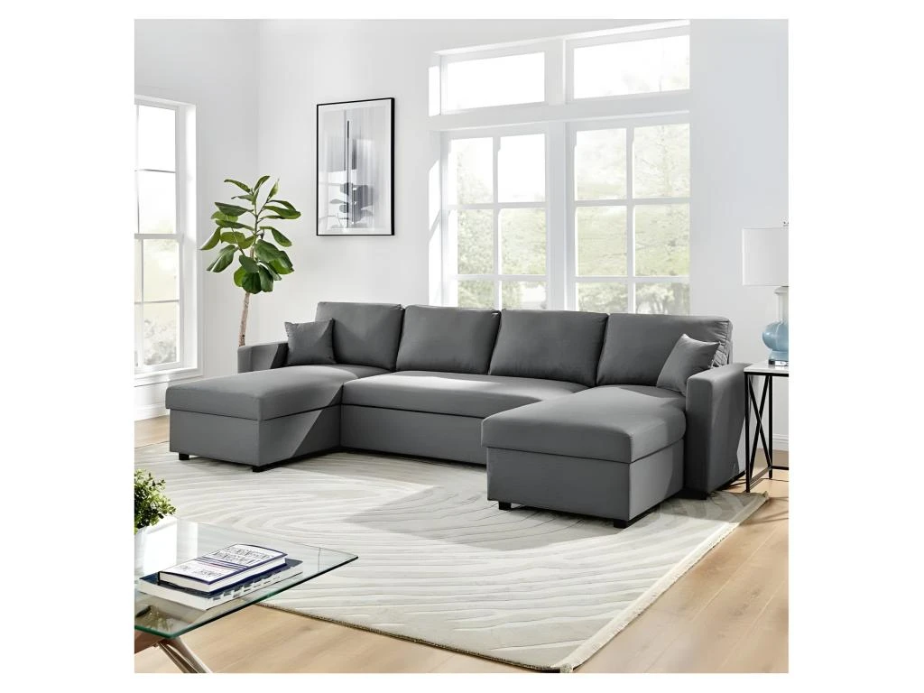 Canapé D’angle Convertible Droit 4 Places Coffre Jonas Velours Côtelé Gris