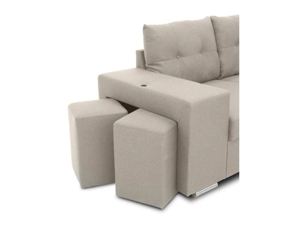 Canapé 2 Places Convertible En Tissu BALEA Avec Table D’appoint Intégrée – Beige Et Gris