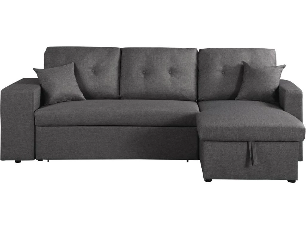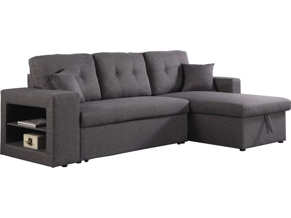Joignez le fonctionnel avec l’esthétique grâce à ce canapé d’angle convertible en Lin ! Ce canapé moderne en lin est doté d’étagères intégrées sur le côté qui sont conçues pour offrir un gain de place précieux et pourront accueillir des livres des magazines ou encore la télécommande de votre téléviseur. Offrant 3 vraies assises, ce canapé se démarque grâce à son design avec son revêtement en lin capitonné qui ajoutera une note d’élégance à votre intérieur. Ce canapé présente aussi l’avantage de pouvoir s’intégrer dans toute sorte d’environnement en y ajoutant une touche de convivialité grâce à ses lignes épurées et intemporel et ses coloris sobres. Descriptif : Canapé d’angle convertible Axel – Lin – Canapé: 233 x 146 x 86 cm – Couchage: 192 x 136 x 44 cm – Espace de stockage (méridienne) + étagère.