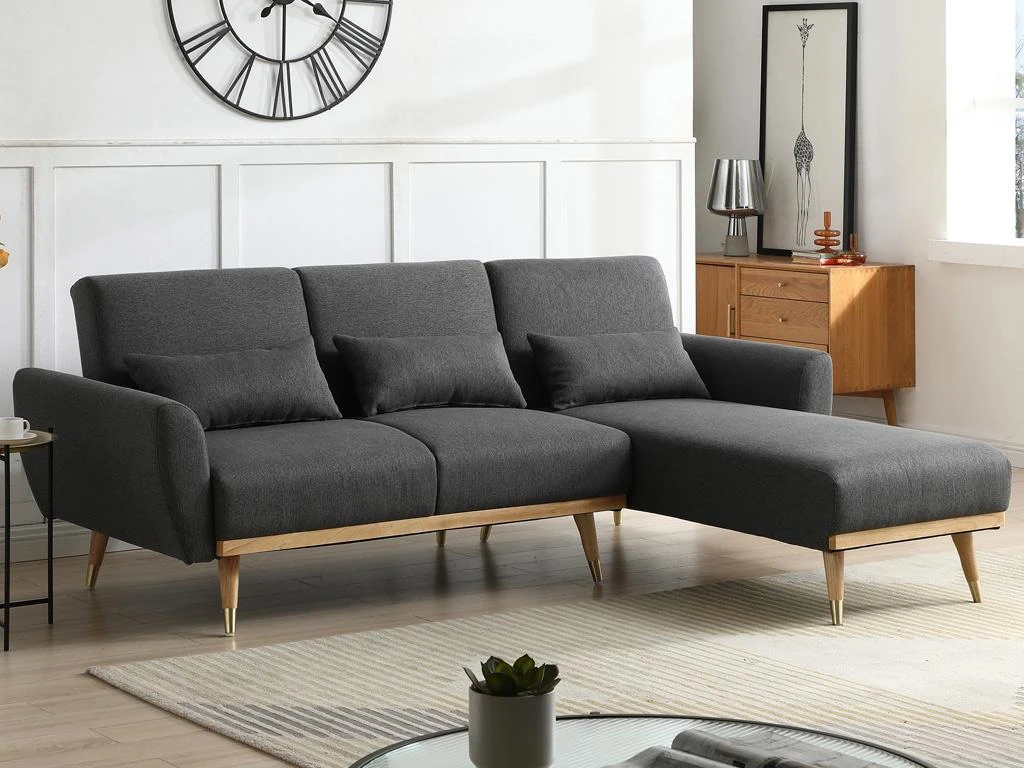 À la recherche d’un mélange de style et de fonctionnalité ? Ce canapé convertible réversible en tissu ANDINO de style scandinave, surmonté d’un piètement en bois, est la solution ! Son design épuré s’adapte à tout type d’intérieur, tandis que ses coussins décoratifs ajoutent du confort. La soirée prend une tournure plus longue, dépliez en un clic votre canapé et transformez-le facilement en lit pour vos invités !