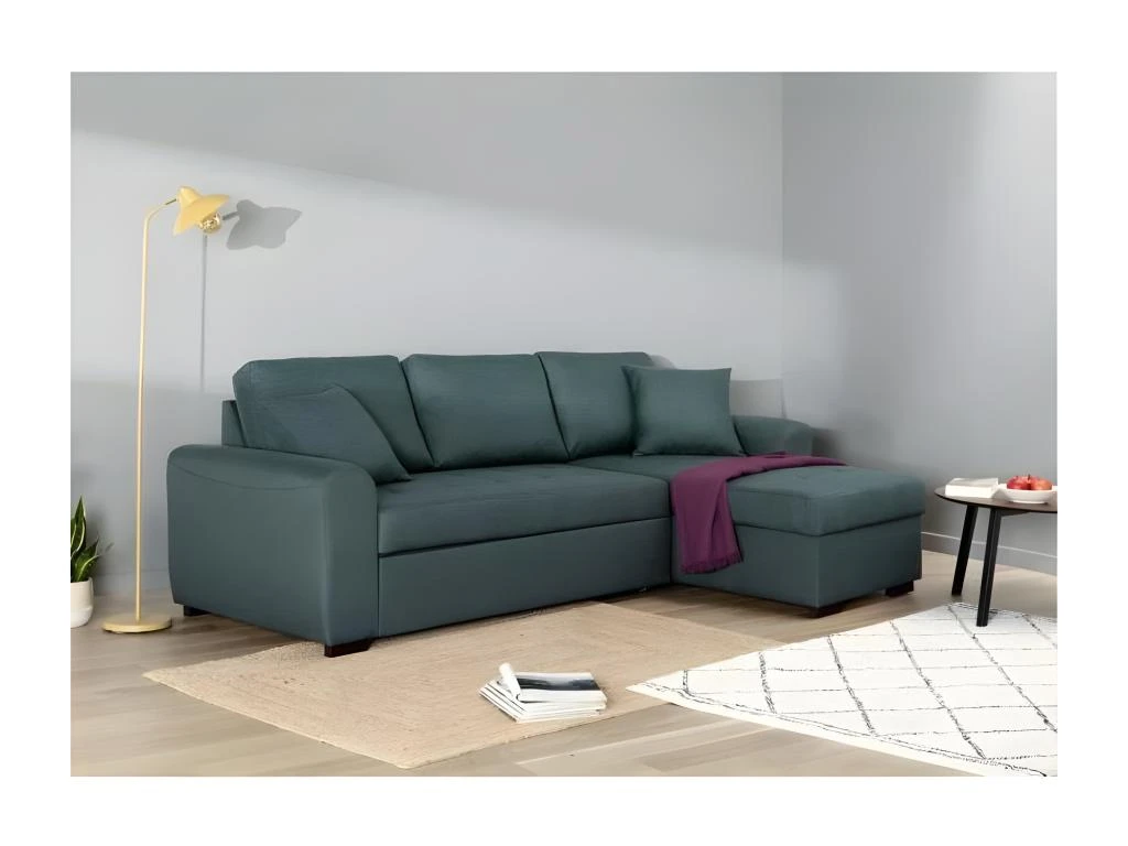 -sag, assise mousse polyuréthane 25kg/m3, Coussins de dos en mousse polyuréthane 21kg/m3 et flocons de mousse, Long 244 cm x Haut 85 cm x larg 151 cm, couchage 201 cm x 133 cm.