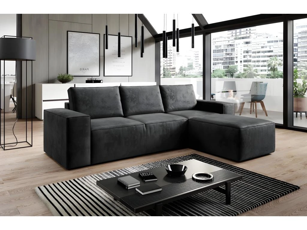 Superbe canapé d’angle convertible en tissu de qualité prestige – Très confortable avec son assise de grande qualité et son dossier garni de duvet. Ressorts ensachés sur l’assise. Espace de couchage et espace de rangement. Tissu de grande qualité. Très belle qualité de fabrication européenne.